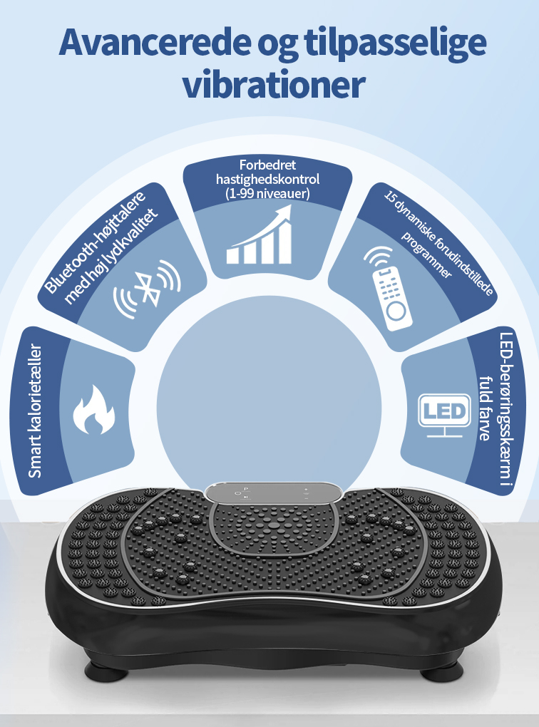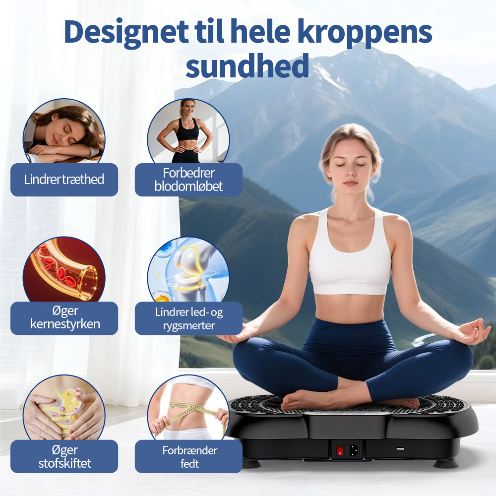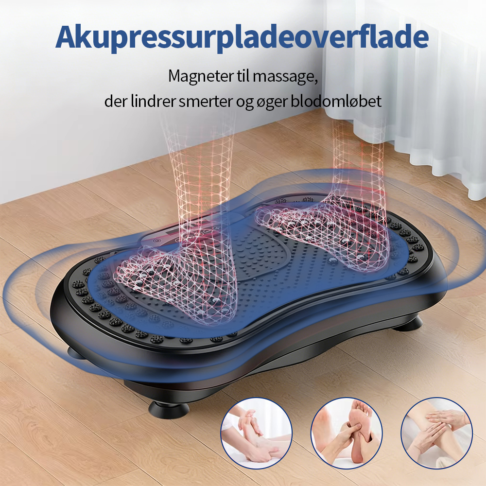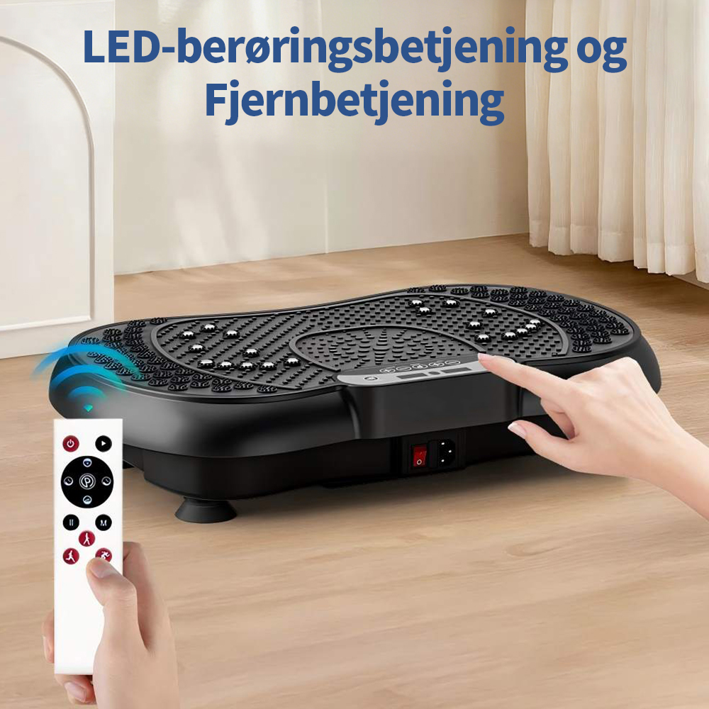 Denne vibrationsplade er udviklet til at aktivere flere muskelgrupper samtidig og understøtter helkropstræning i et kontrolleret og skånsomt format.