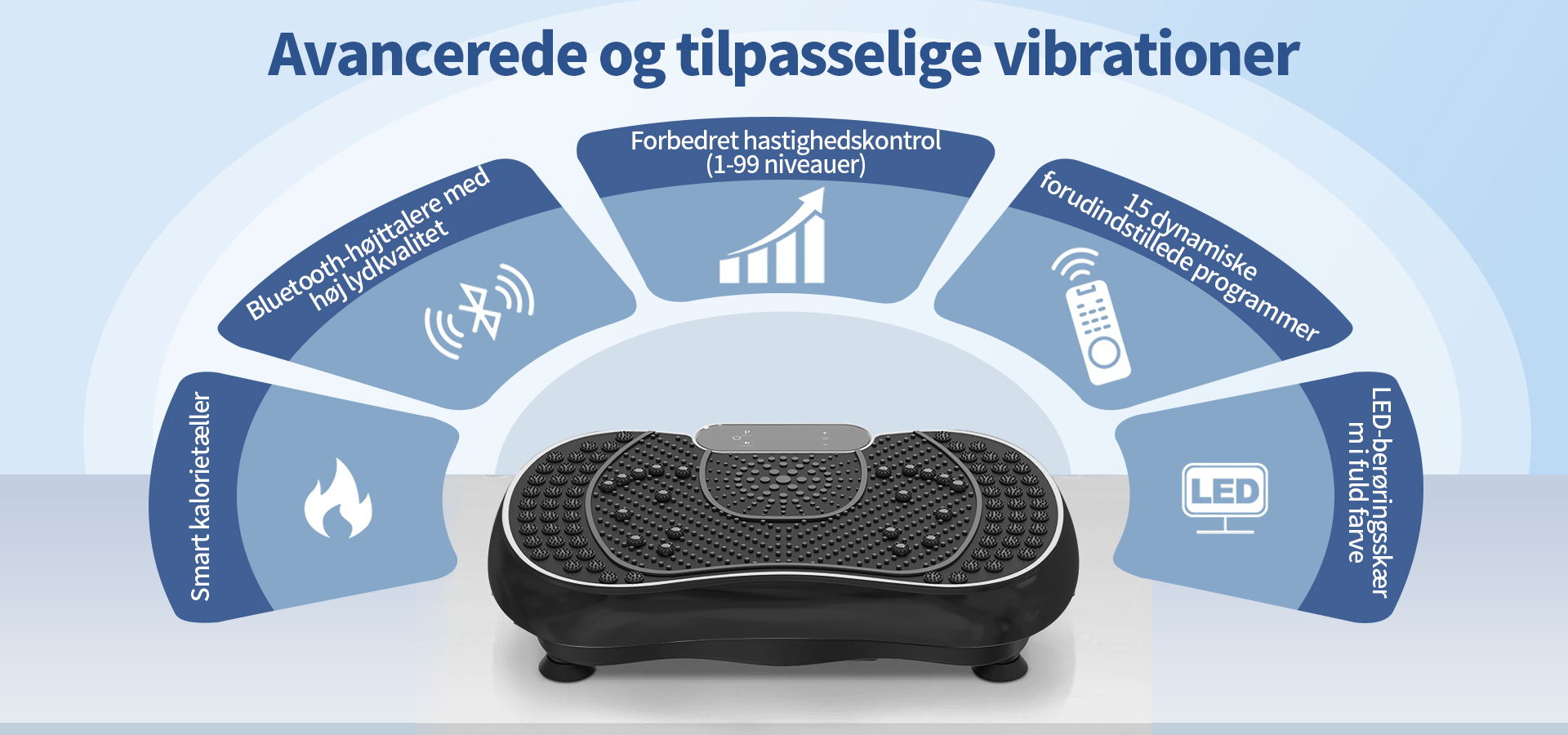 Det integrerede LED touch-panel giver et klart overblik og intuitiv kontrol under hele træningen. Du kan nemt justere hastighedsniveauer og indstillinger med et enkelt tryk.